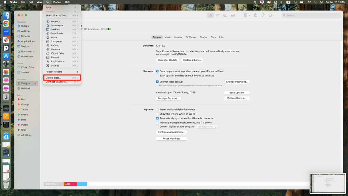 - 在出现的对话框中,准确键入以下路径:~/Library/Application Support/MobileSync/Backup/
