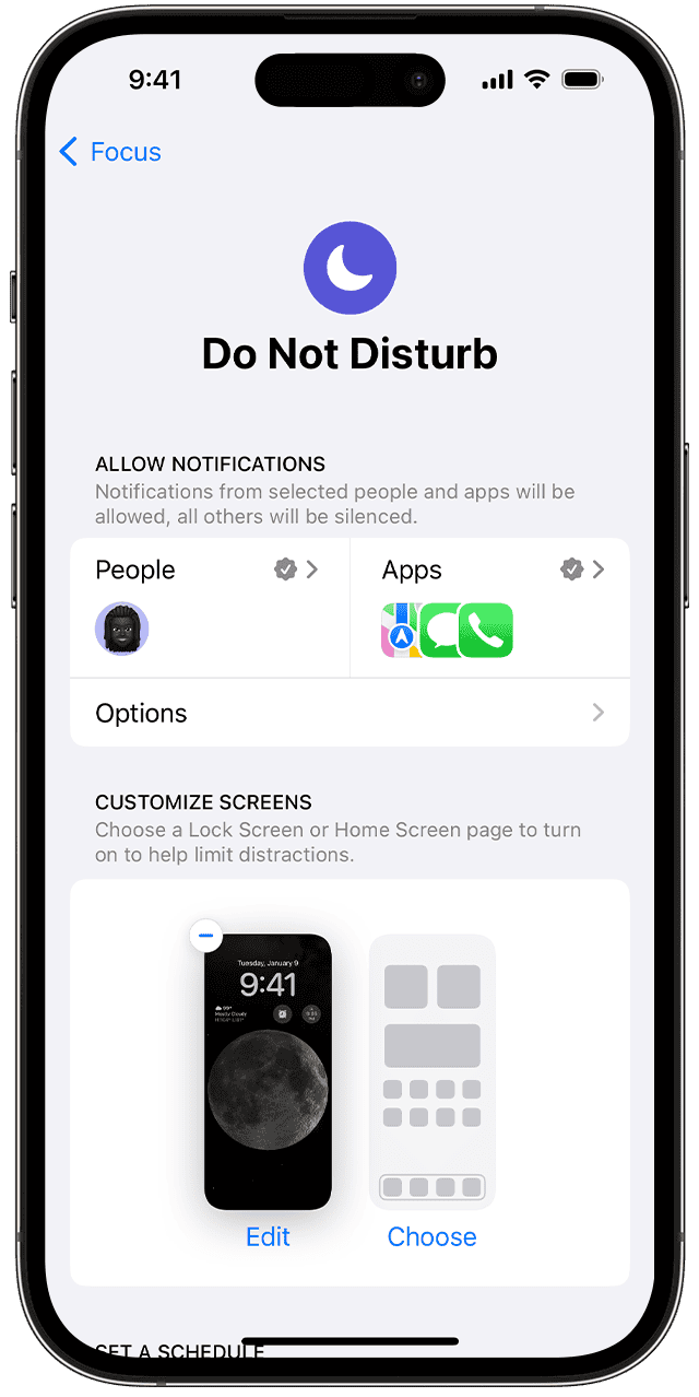 为了获得更多控制,您可以在使用“请勿打扰”时允许来自某些组的呼叫。前往“设置”>“焦点”>“请勿打扰”>“允许的通知”。