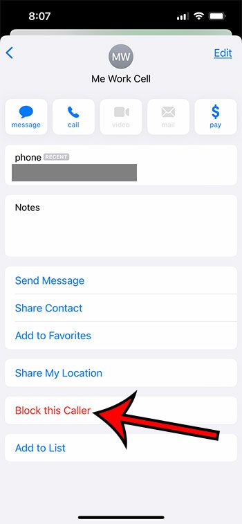 第 5 步:点击阻止此来电者菜单底部的按钮。