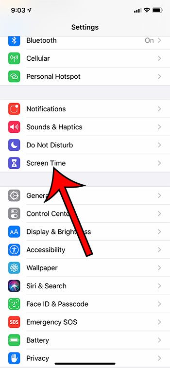 第 2 步:向下滚动并选择屏幕时间选项。
