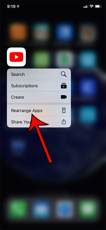 第 2 步:点击并按住该应用程序,然后选择重新排列应用程序选项。