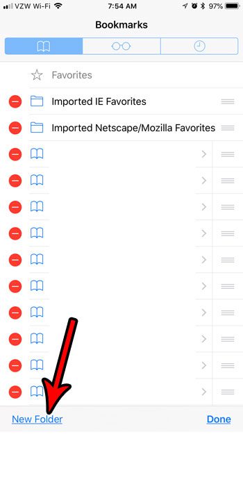 完成这些步骤后,您将在 iPhone 上的 Safari 浏览器中创建一个新的书签文件夹,您可以在其中保存书签。