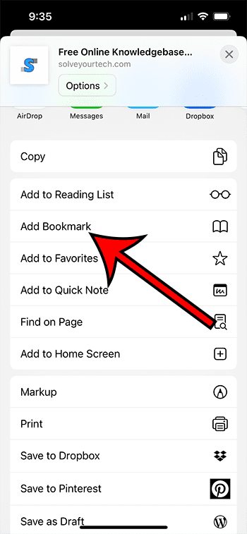 我们的指南在下面继续提供有关创建 iPhone 书签的更多信息,包括这些步骤的图片。