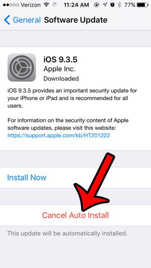 本文中的步骤是在运行 iOS 9.3 的 iPhone 5 上执行的。这些步骤将取消您之前安排的自动 iOS 更新。如果您这样做,您将需要稍后返回更新菜单来安装该更新。