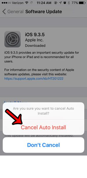 第 5 步:点击取消自动安装再次按钮以确认您希望取消 iOS 更新的安装。