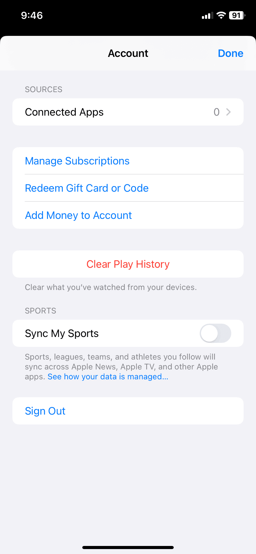 - 向下滚动到订阅然后单击管理。