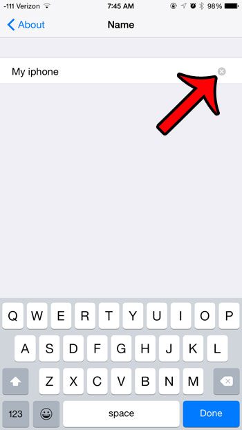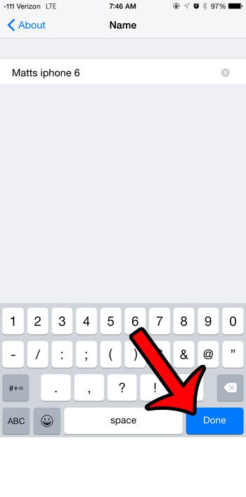 - 步骤 6:输入 iPhone 的新名称,然后点击蓝色完毕键盘右下角的按钮。