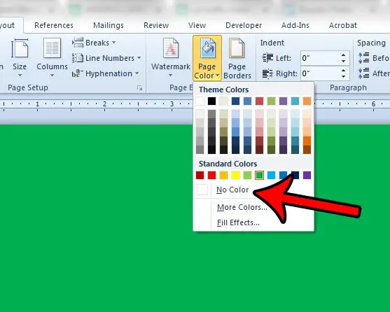 我们的指南在下文中继续提供有关在 Word 2010 中更改背景颜色的其他信息,包括这些步骤的图片。