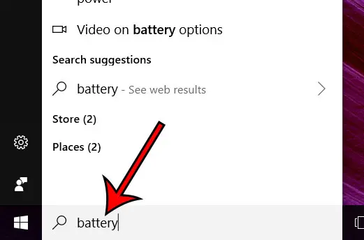 步骤 1:在屏幕左下角的搜索字段中输入“电池”。