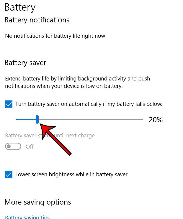 我们下面的教程将向您展示如何调整此设置,以便当您达到剩余电池电量的一定百分比时,省电模式就会启动。