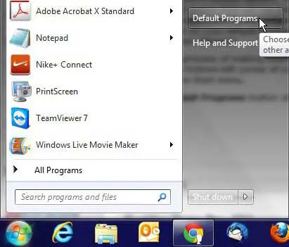 第 2 步:单击默认程序按钮位于“开始”菜单右侧底部。