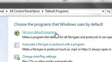 第 3 步:单击设置您的默认程序链接位于窗口的顶部中心部分。