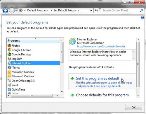 如何使 Internet Explorer 成为 Windows 7 中的默认浏览器
