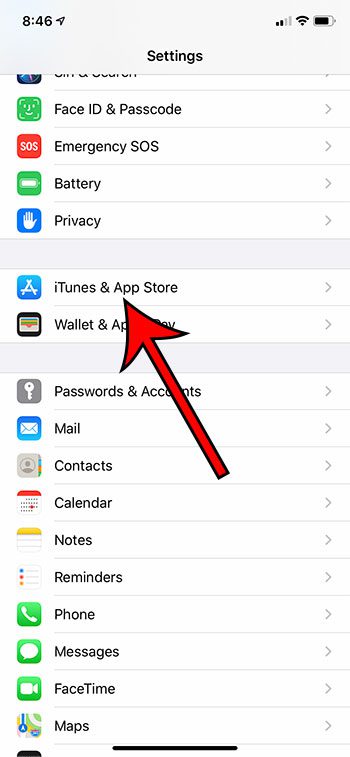 第 2 步:向下滚动并选择iTunes 和应用商店选项。
