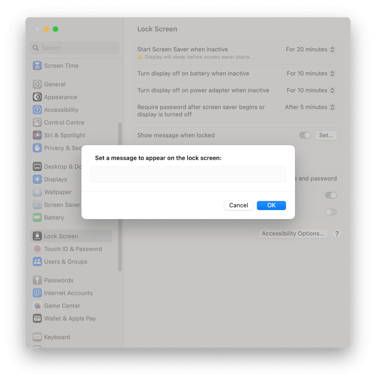 您可以将 Mac 设置为在 Mac 锁定时在锁定屏幕上显示消息。这可能是您登录时对自己的问候,提醒其他用户某件事,或者只是您喜欢或激励您的短语: