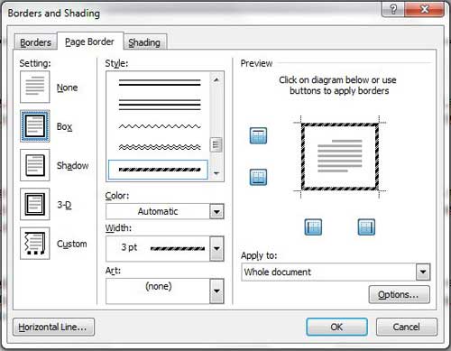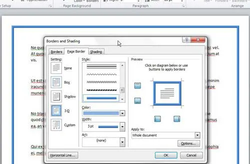 您可以对 Word 2010 页面边框进行的更改次数没有限制,因此,如果您认为所选的页面边框不适合您的文档,请随时返回此菜单。