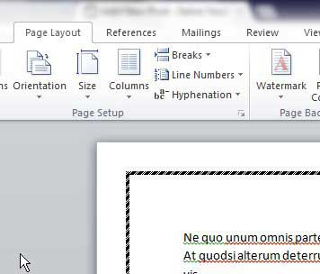 选项卡下方是丝带,这是 Microsoft Office 2010 中使用的主要导航工具。页面布局选项卡包含一个页面背景部分,其中包含页面边框按钮。