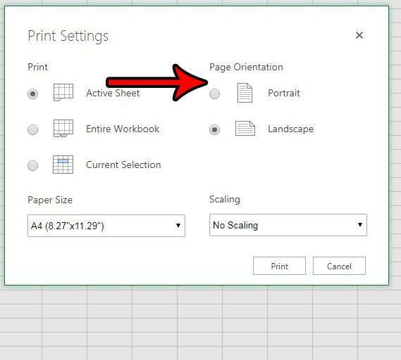 步骤 6:从窗口中央的菜单中选择所需的页面方向,然后单击打印按钮。