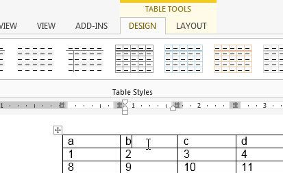 第 2 步:单击表格单元格之一,该单元格将显示表格工具菜单位于窗口顶部。