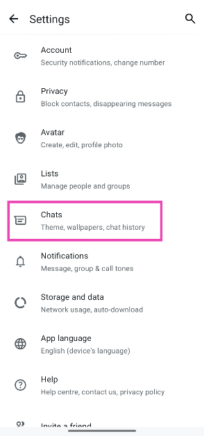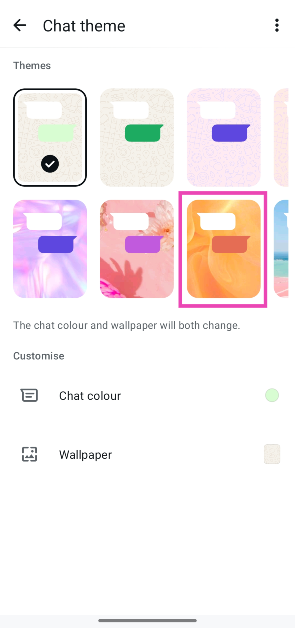 第9步:转到上一屏幕并选择墙纸为聊天设置自定义背景。