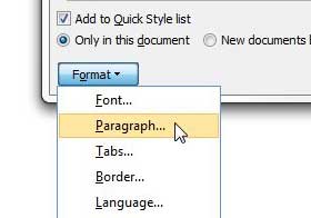 第 4 步:单击格式按钮位于窗口底部,然后单击段落选项。
