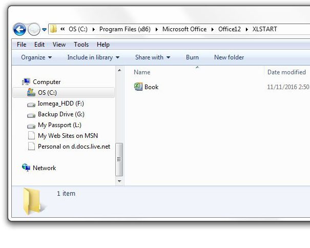 步骤7:浏览到保存文件的位置,复制它,然后将复制的文件粘贴到C:\Program Files (x86)\Microsoft Office\Office12\XLSTART文件夹。请注意,您需要拥有管理员凭据才能保存在此位置。