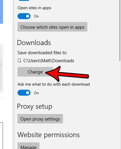 第 5 步:单击改变按钮下下载。请注意,您当前的下载文件夹显示在此按钮上方。