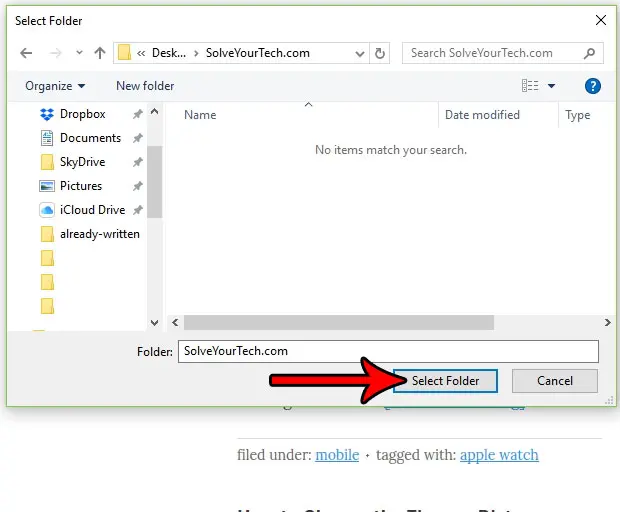步骤 6:浏览到要用于 Microsoft Edge 下载的新文件夹,然后单击选择文件夹按钮。