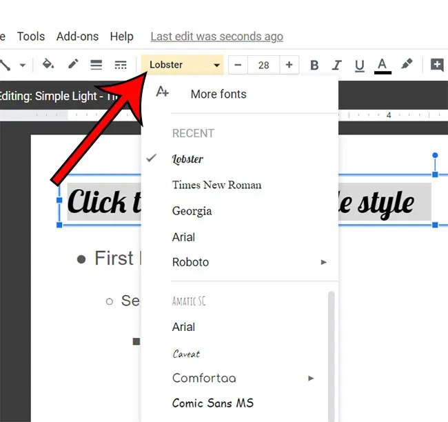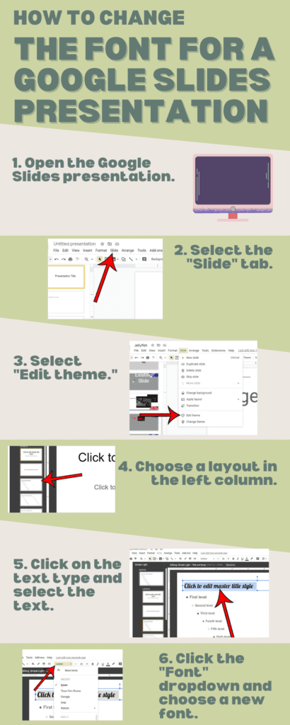 我们的指南在下面继续提供有关更改 Google 幻灯片演示文稿字体的其他信息,包括这些步骤的图片。