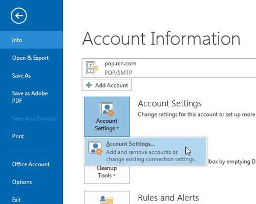 第 2 步:单击信息窗口左侧的选项卡,单击账户设置,然后单击账户设置在下拉菜单中。