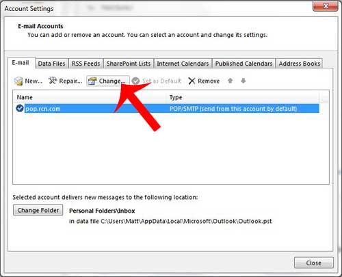 步骤 3:单击您要更改发送端口的电子邮件帐户,然后单击改变按钮。