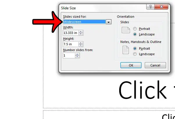 如果这些尺寸不是您想要的,那么您可以在中输入您自己的自定义值宽度和高度字段。请注意,您还可以在此屏幕上指定幻灯片的方向,以及选择备用页码编号方法。您可以单击好的完成更改后按钮。