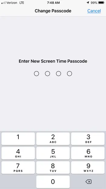 第 4 步:选择更改屏幕时间密码屏幕底部的选项。