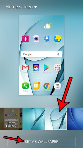 步骤 3:选择您想要用作背景的壁纸,然后点击设置为壁纸按钮。请注意,如果您想使用自己的一张照片作为手机壁纸,则可以选择“来自图库”选项。