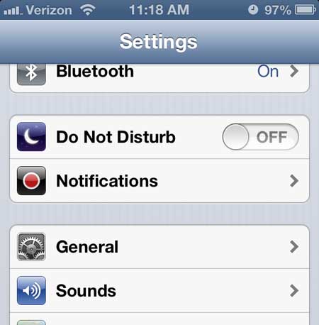 步骤 2:触摸一般的菜单顶部附近的选项。