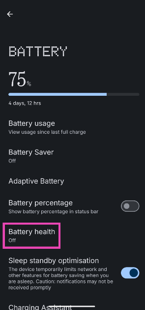 您可以通过此方法检查电池健康状况并设置充电限制。没有电话。您还可以使用 Nothing Phone 上的充电助手,在设备未达到最快充电速度或设置了充电限制时显示通知。如果您有任何疑问,请在评论中告诉我们!