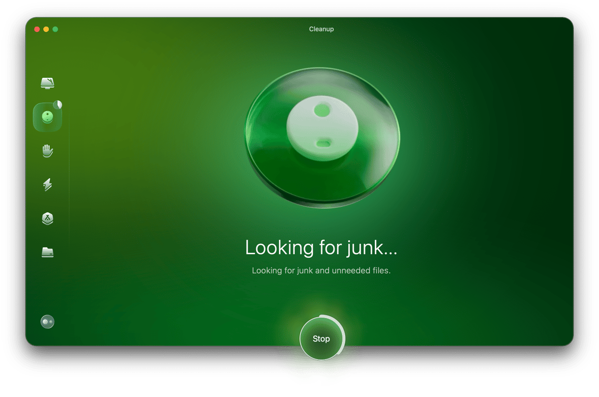 - 从侧边栏中选择“清理”,然后单击“扫描”。