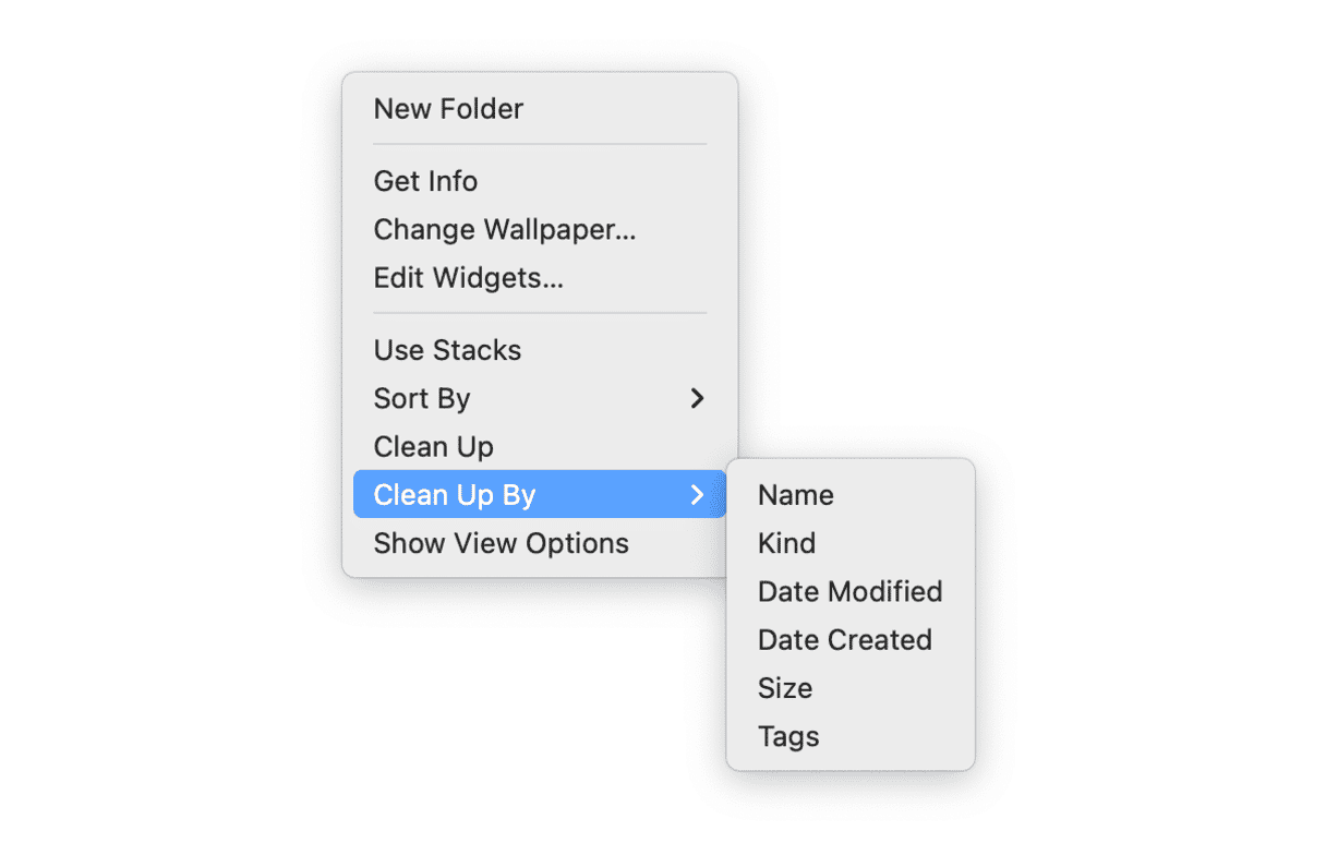- 您还可以单击“组堆栈依据”来管理它们的放置方式 - 它具有与上述“清理依据”功能相同的选项。
