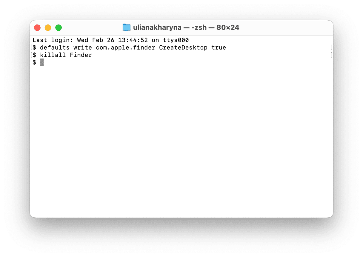 您的桌面现在将是空白的。要恢复图标,请使用以下命令: