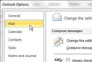 第三步:点击邮件在左侧的列中展望选项窗户。