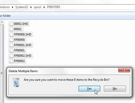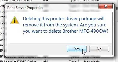 第 5 步:单击是的选项以确认您要删除打印机。不过,暂时不要关闭此窗口。