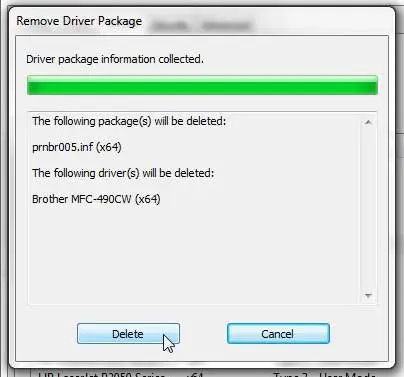 第 11 步:单击删除按钮完成打印机驱动程序的删除。