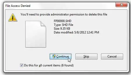 第19步:点击继续并提供管理员访问权限以确认您要删除这些文件。