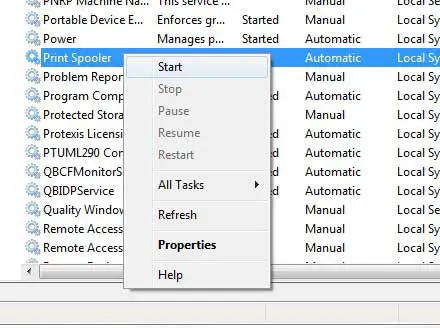 第20步:返回服务我们在步骤 14 中保持打开状态的窗口,滚动到后台打印程序,右键单击它,然后单击开始。