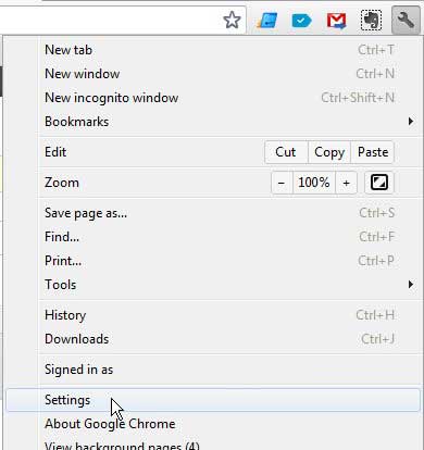 步骤 2:单击窗口右上角的扳手图标,然后单击设置菜单底部的选项。
