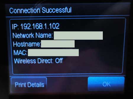 第 9 步:您现在将看到一个屏幕,显示连接成功,并为您提供有关打印机的一些信息。