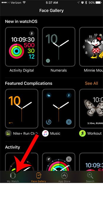 第 2 步:选择我的手表屏幕底部的选项卡。