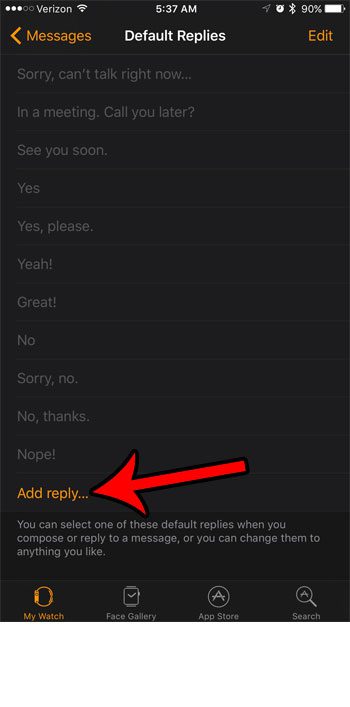 您可以通过多种方式从手表回复短信,包括默认回复列表,其中包含您可能想要在短信中发送的一些常用短语。