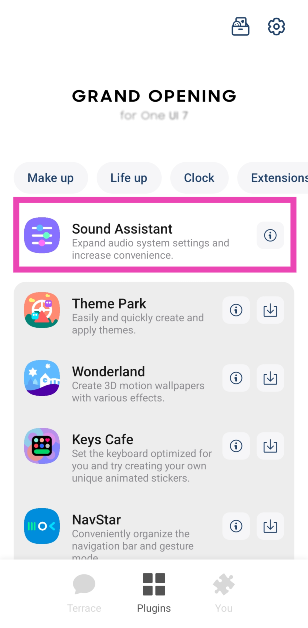 步骤一:前往 Galaxy 商店并下载这声音助手应用程序。该应用程序充当 Good Lock 应用程序的插件。