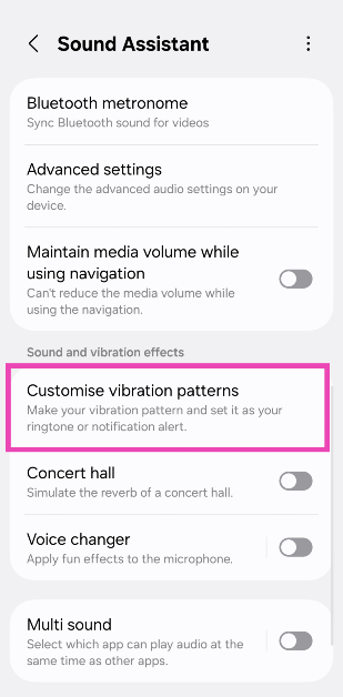 虽然大多数 Android 手机没有内置工具来创建新的振动模式,但三星用户很幸运。非常有用的 Good Lock 应用程序有一个“声音助手”插件,可以让您对设备中的触觉电机进行一些控制。创建新模式后,您可以在设备设置的“声音和振动”部分中查看它。